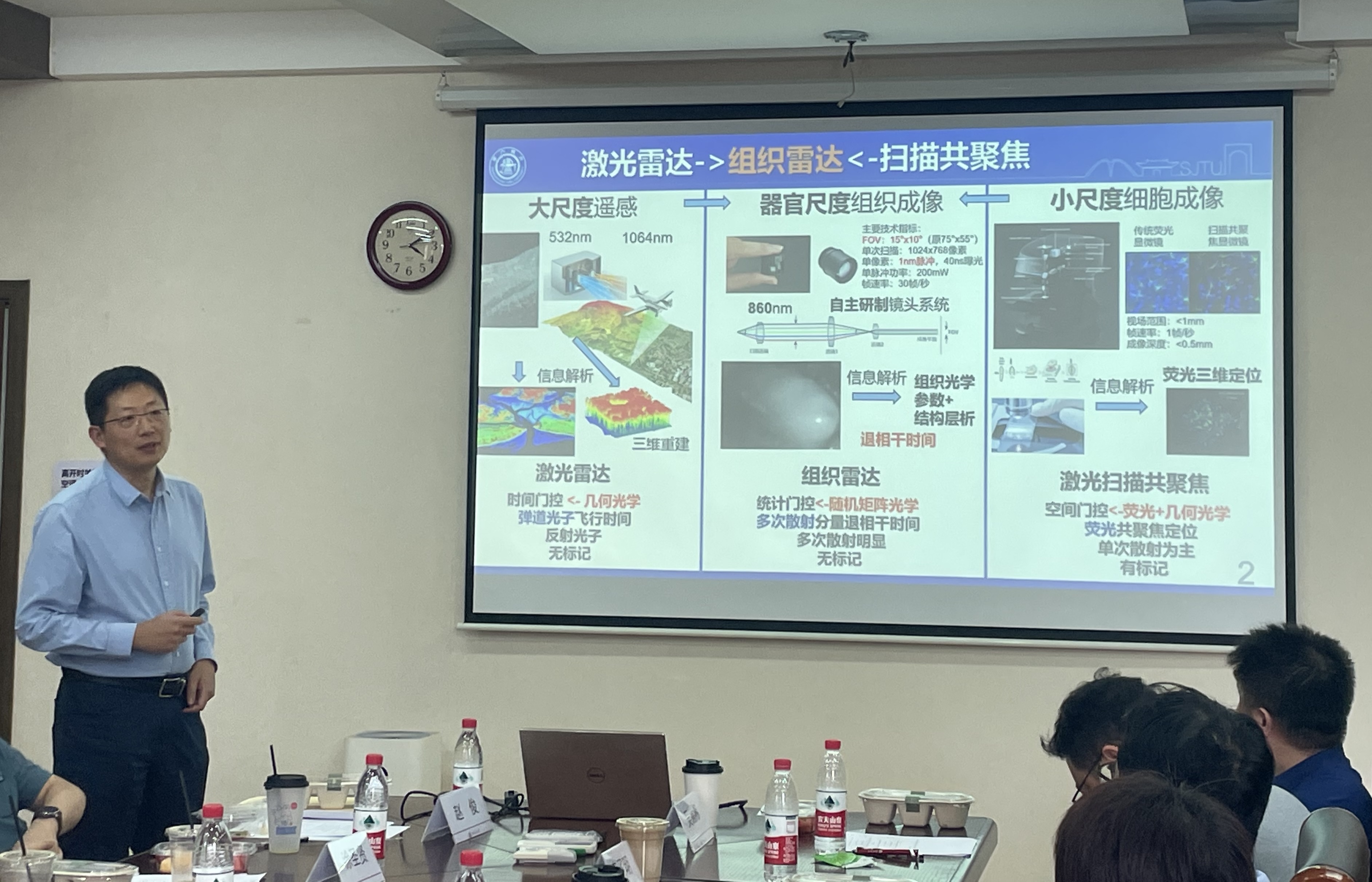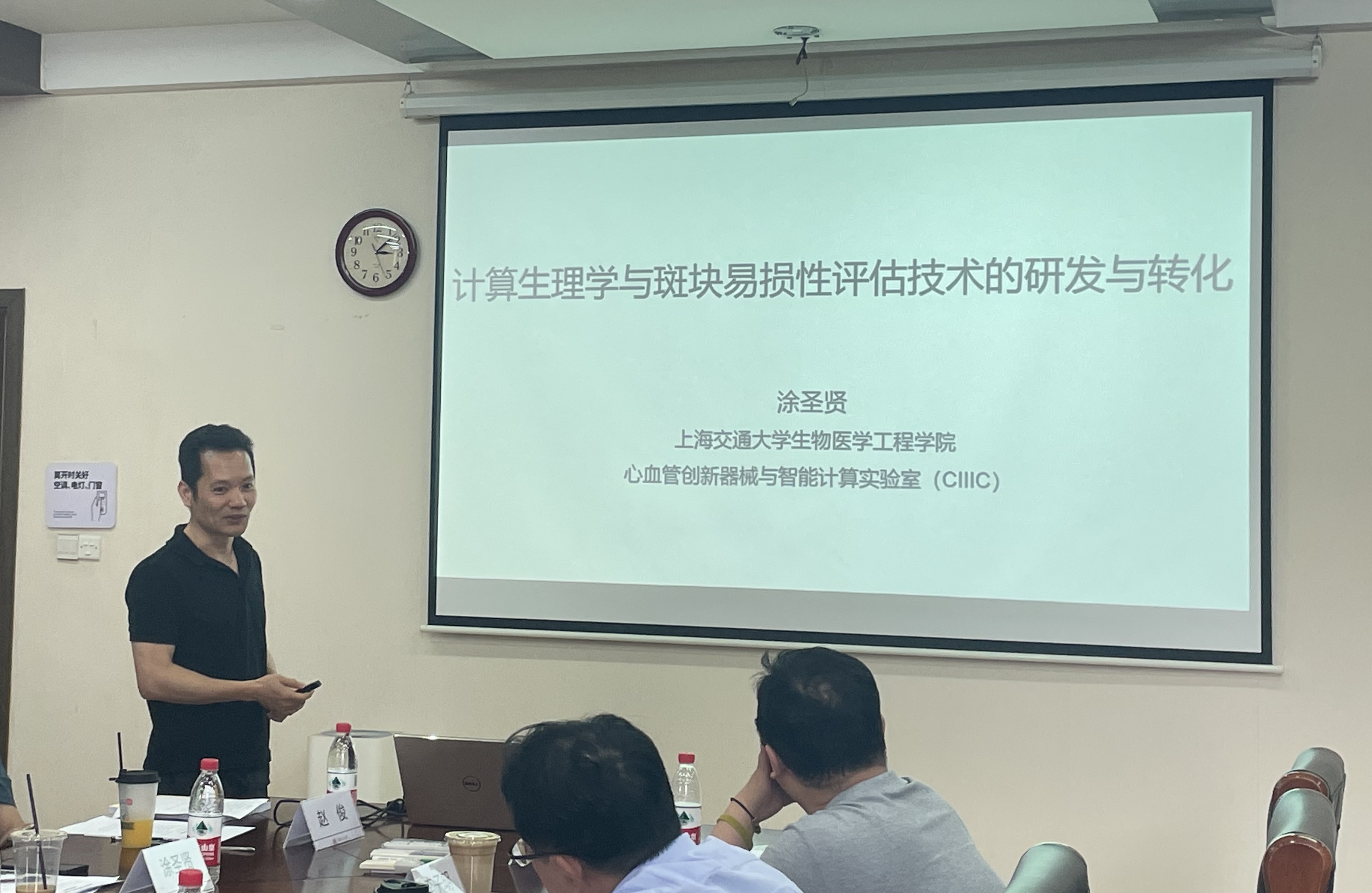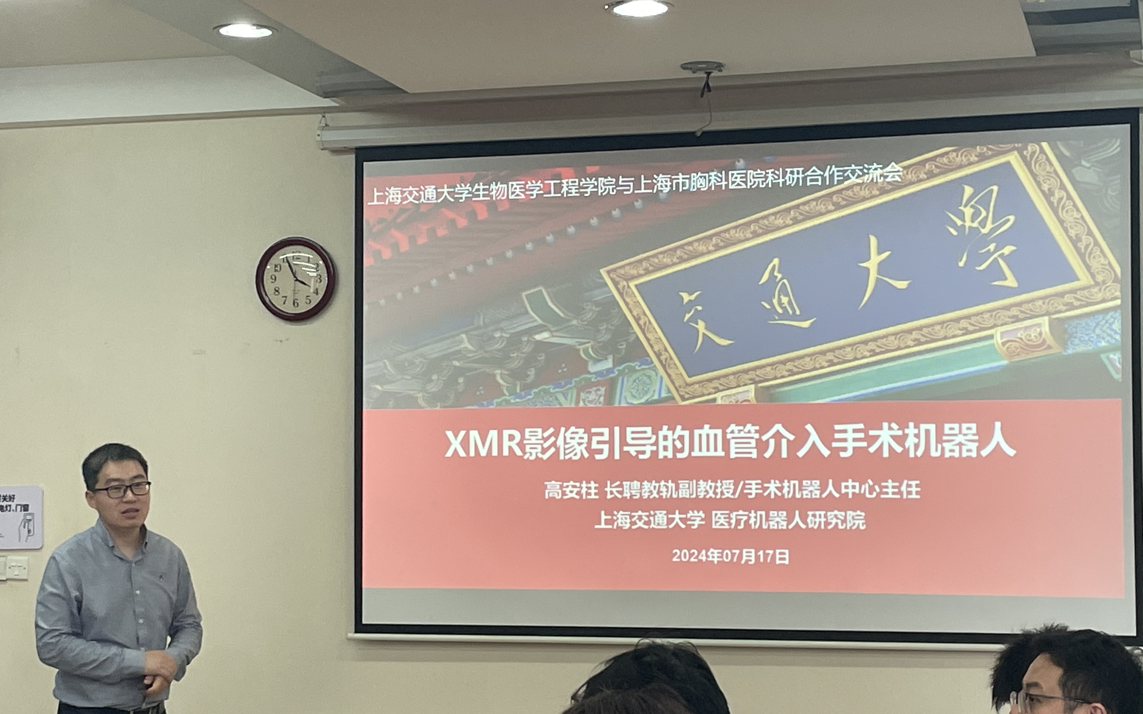 随后,双方团队围绕胸科疾病的临床需求和诊治技术进行报告分享。麻醉科吴镜湘主任介绍了胸科麻醉评估过程中医疗大数据的应用前景,希望在多模态血压监测预警、床旁自动化诊断、临床事件知识图谱开发等方面开展医工合作。心外科戴黄栋医生以心力衰竭患者的远程监控为例,分享了远程医疗对慢性病患者健康监护的重要意义,希望在数据捕获整合与识别分析方面深入交流。韩文正副主任讲述了肾动脉周围神经消融术的即刻评估需求与研究瓶颈,期待与学院老师的进一步合作。放疗科张琴副主任讨论了当前胸部肿瘤放疗技术存在的关键问题,并基于已开展的医工交叉研究展望了由人工智能引导、数据驱动、生物学信息赋能的新一代胸部肿瘤精准放疗技术。作为回应,生医工学院参会教师逐一分享了团队在心血管疾病影像评估、成像分析、分子影像探针、肿瘤精准诊疗、医疗机器人等领域的研究进展。孙建奇副院长向参会人员介绍了PO18 的医工交叉特色与Med-X创新转化成果。现场讨论氛围融洽,火花不断。
