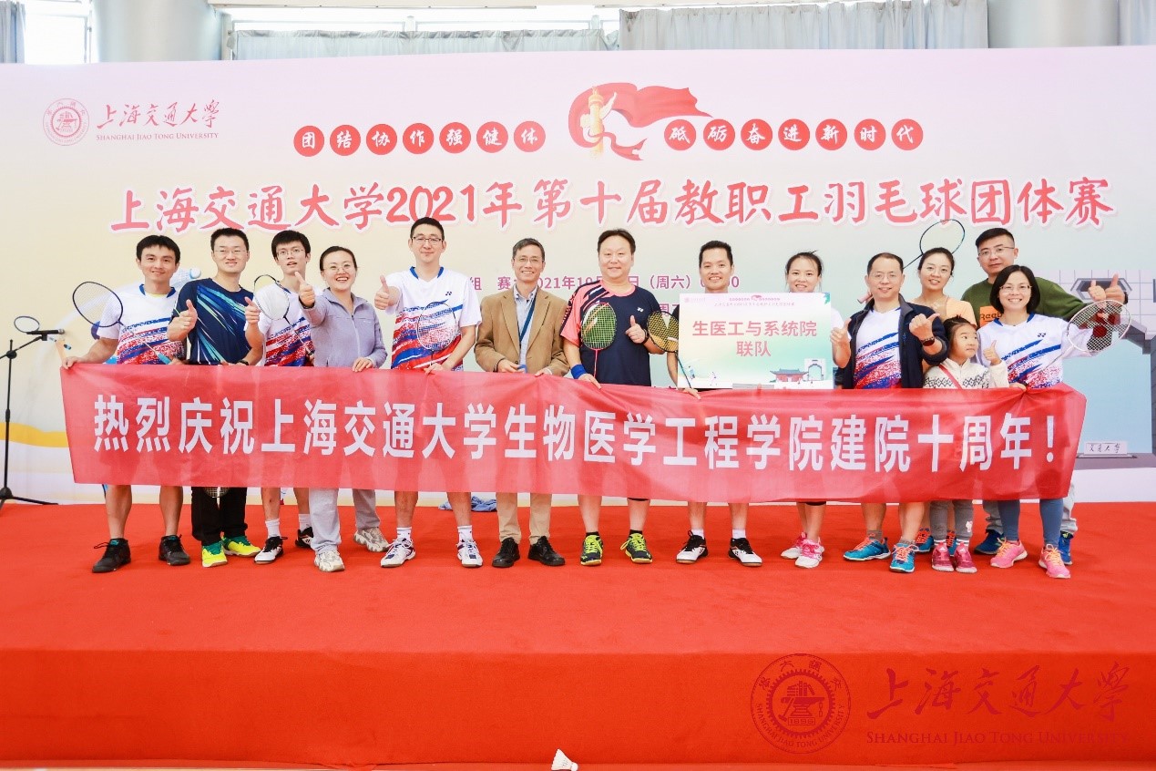 10月23日和27日,由校工会、体育系联合主办、教工羽毛球协会协办的上海交大2021年教职工羽毛球团体赛,在闵行校区霍英东体育中心举行。PO18 联合系统生物医学研究院组队参加比赛,经过激烈的角逐,生医工与系统院联队在乙组21支球队中脱颖而出,一举获得第三名,顺利晋级甲组,为生医工学院建院十周年献礼。