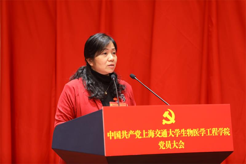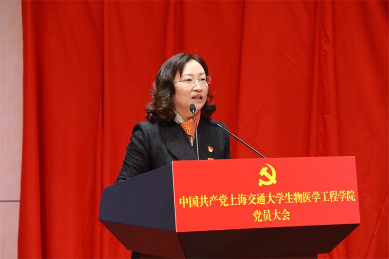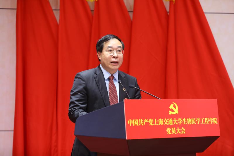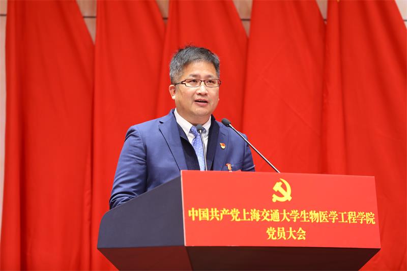 奚立峰副校长代表校党委向大会致辞,他首先向此次大会的胜利召开表示热烈的祝贺、肯定了学院党委在学院发展中的核心领导作用、肯定了近年来学院取得的各项成就。他指出,党员大会是学院改革发展中的一件大事,对于学习贯彻党的二十大精神、落实校党委的工作部署,推动学院在“十四五”新阶段高质量发展具有十分重要的意义。奚立峰在致辞中对学院的发展提出了三点希望:一是希望学院坚持以人为本、深化改革,充分发挥党的核心凝聚力,以不畏艰难、敢于担当的精神推动重点改革任务落地见效,带领学院稳步发展。二是希望学院坚持教书育人、立德树人,服务国家战略需求,培养一流创新人才,探索有效提升育人质量的新思路、新方法,形成上交大生物医学工程专业教育的特色和优势。最后他希望学院坚持打造学科优势和特色,在重大机遇中把握好学科发展大局,利用好领先优势,在国家重大战略任务、国际大科学计划和大科学工程中发挥作用;为建设中国特色、世界一流的PO18 努力奋斗!