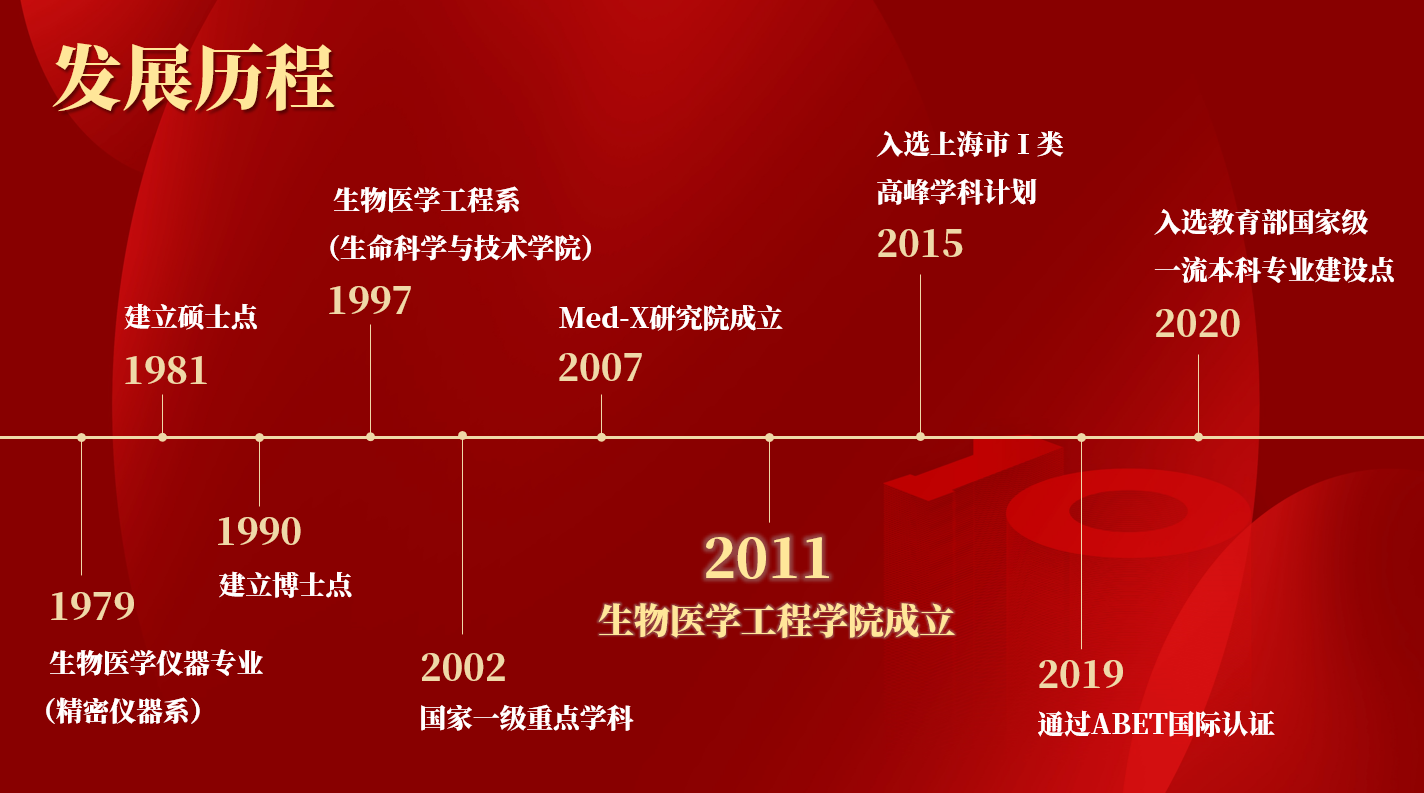 PO18 成立于2011年4月,秉承“敢为人先、追求卓越”的精神,致力于医工、医理交叉研究和创新型人才培养,依托交大优质的工程学和医学临床资源,逐步形成“医工交叉、国际化、创新转化”的办学特色,2019年成为国内唯一通过ABET国际认证的生物医学工程专业,并入选教育部第一批一流本科专业建设计划。其学科历史可追溯至1979年创办的生物医学仪器专业,是国内最早创办的生物医学工程专业之一,在历次学科评估中名列前三。PO18 自成立起,就以建设一流学科为目标,在学科布局、人才培养、科学研究、师资队伍建设等多个方面努力探索和实践。