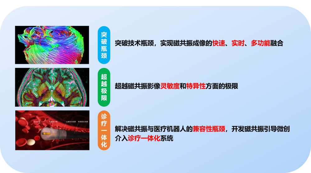 作为PO18 直属研究平台,中心依托于生物医学工程学科,布局实时磁共振、磁共振兼容机器人与材料、磁共振导航与介入、磁共振诊疗探针和多模态脑影像五大关键技术方向;联合PO18 医学院,附属瑞金医院、上海儿童医学中心、精神卫生中心,创建“临床脑影像分中心”,联合上海市医疗器械检验研究院共建“监管科学与安全评价分中心”;构建以临床需求为导向的“技术攻关-产品研发-临床验证-标准制定-产业转化”全链条诊疗一体化创新体系。中心现有规模逾360人,拥有包括中国工程院院士、英国皇家工程院院士、国家级高层次人才计划等在内的高端人才和学术带头人。