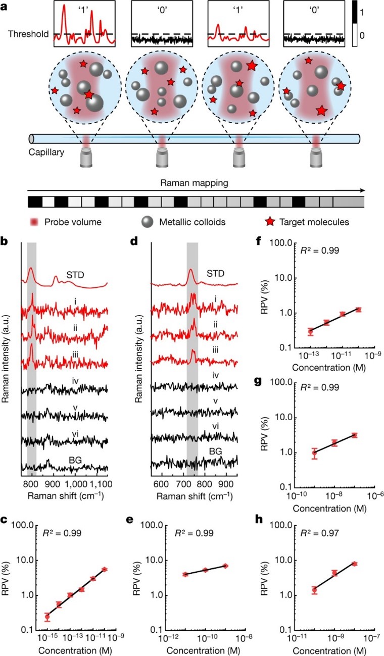 2024年4月17日国际顶级期刊Nature(《自然》)在线发表了题为“Digital colloid-enhanced Raman spectroscopy by single-molecule counting”的研究论文。该研究针对表面增强拉曼光谱领域内定量的挑战,系统阐述了基于数字胶体增强拉曼光谱(digital colloid-enhanced Raman spectroscopy, dCERS)的定量技术。基于单分子计数,dCERS成功实现了超低浓度目标分子的可靠定量检测,为表面增强拉曼光谱技术的普遍应用奠定了重要基础。