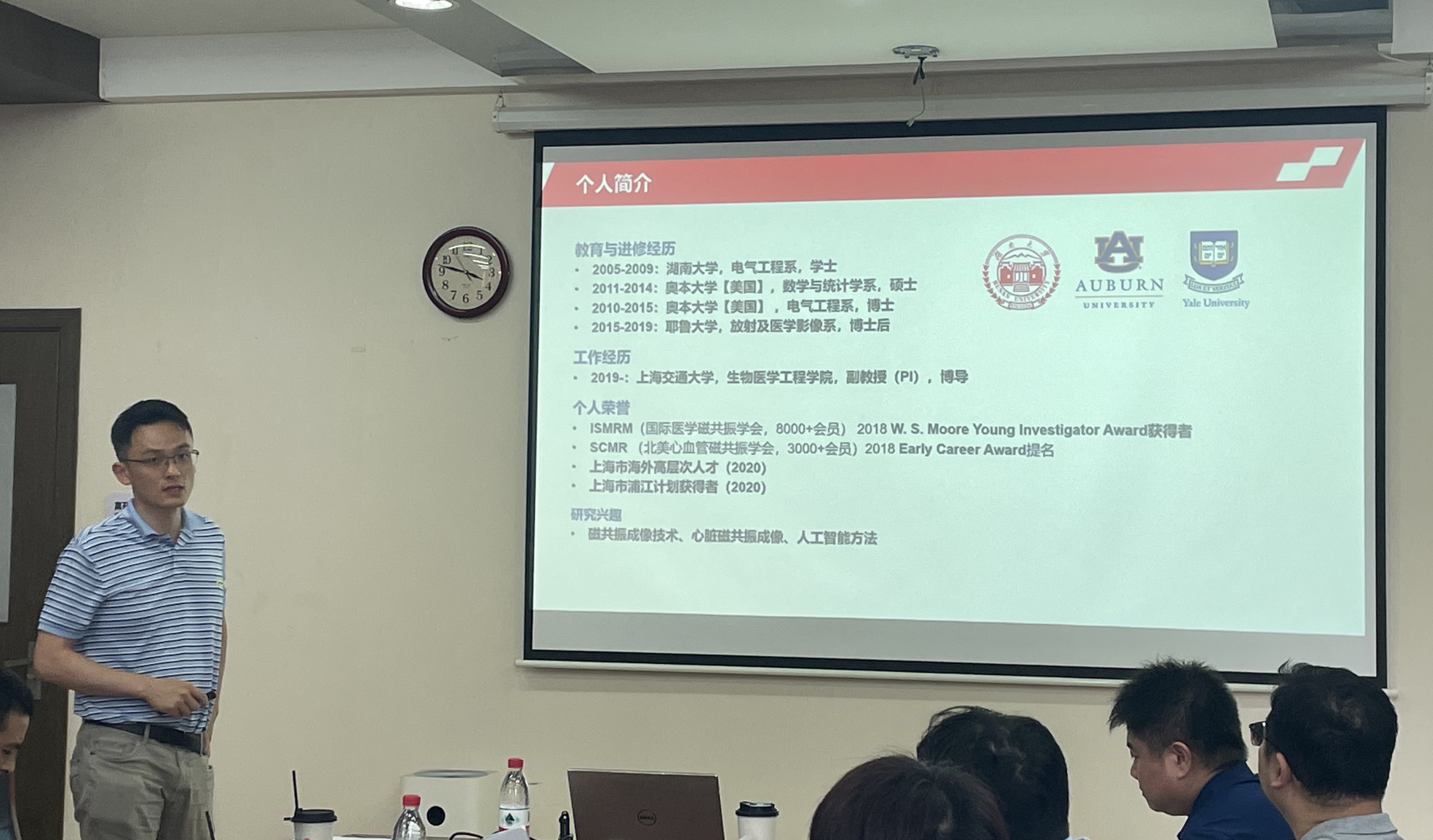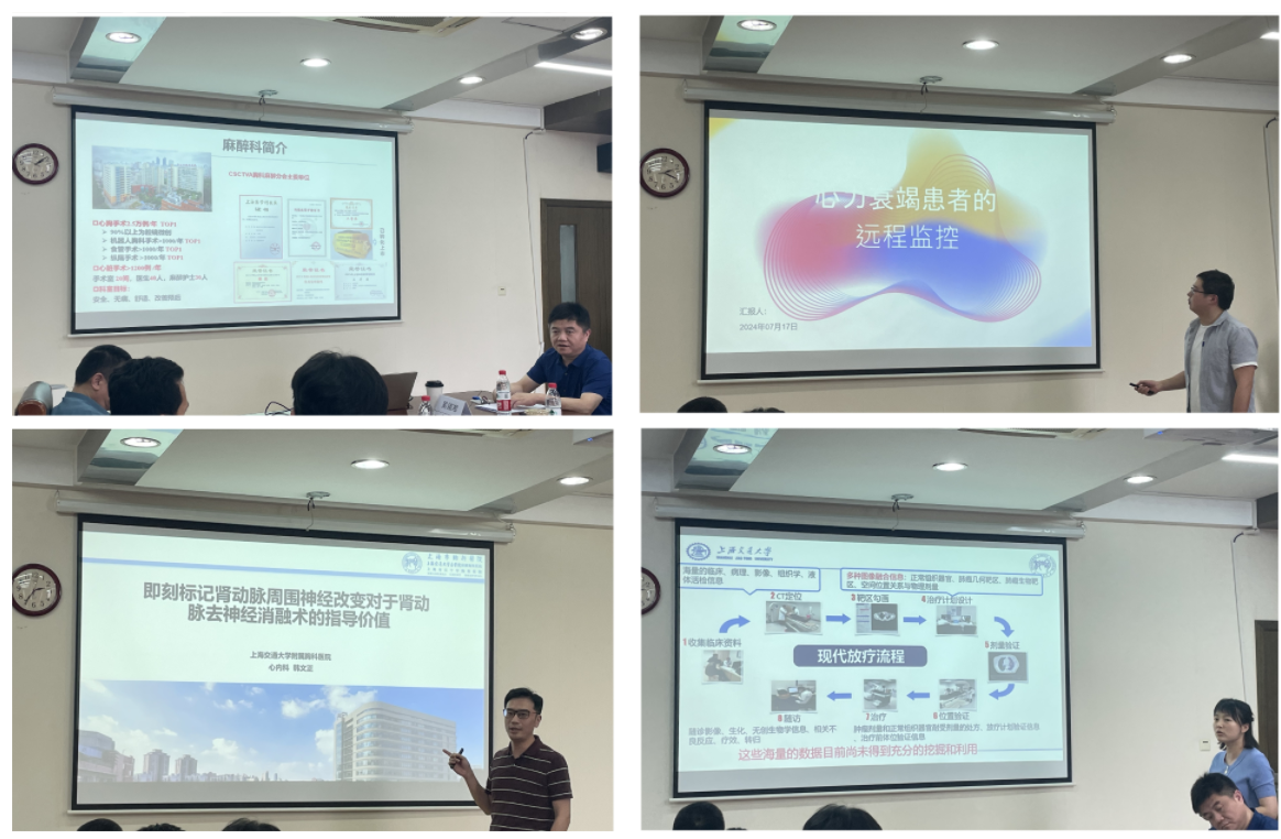 随后,双方团队围绕胸科疾病的临床需求和诊治技术进行报告分享。麻醉科吴镜湘主任介绍了胸科麻醉评估过程中医疗大数据的应用前景,希望在多模态血压监测预警、床旁自动化诊断、临床事件知识图谱开发等方面开展医工合作。心外科戴黄栋医生以心力衰竭患者的远程监控为例,分享了远程医疗对慢性病患者健康监护的重要意义,希望在数据捕获整合与识别分析方面深入交流。韩文正副主任讲述了肾动脉周围神经消融术的即刻评估需求与研究瓶颈,期待与学院老师的进一步合作。放疗科张琴副主任讨论了当前胸部肿瘤放疗技术存在的关键问题,并基于已开展的医工交叉研究展望了由人工智能引导、数据驱动、生物学信息赋能的新一代胸部肿瘤精准放疗技术。作为回应,生医工学院参会教师逐一分享了团队在心血管疾病影像评估、成像分析、分子影像探针、肿瘤精准诊疗、医疗机器人等领域的研究进展。孙建奇副院长向参会人员介绍了PO18 的医工交叉特色与Med-X创新转化成果。现场讨论氛围融洽,火花不断。