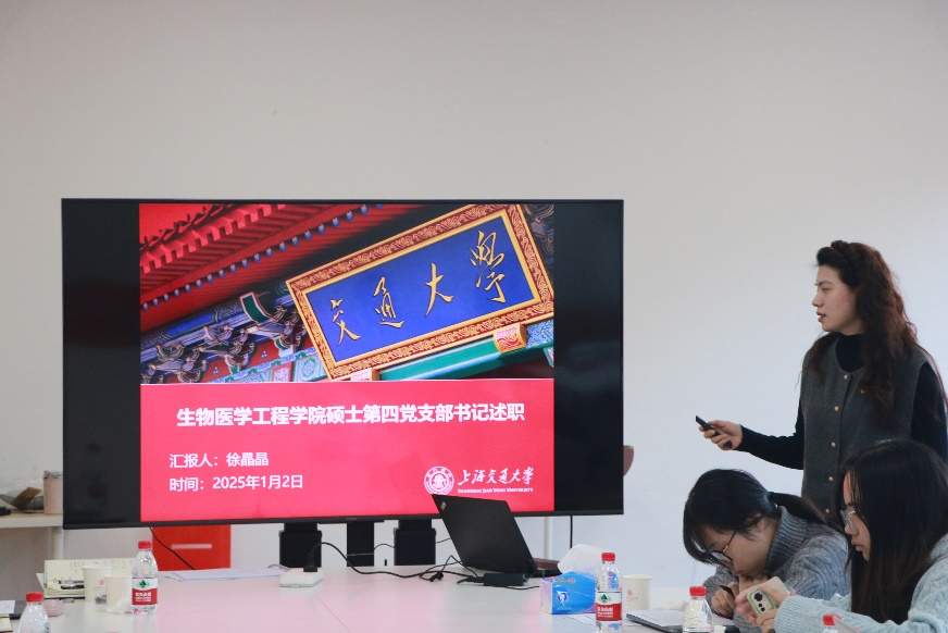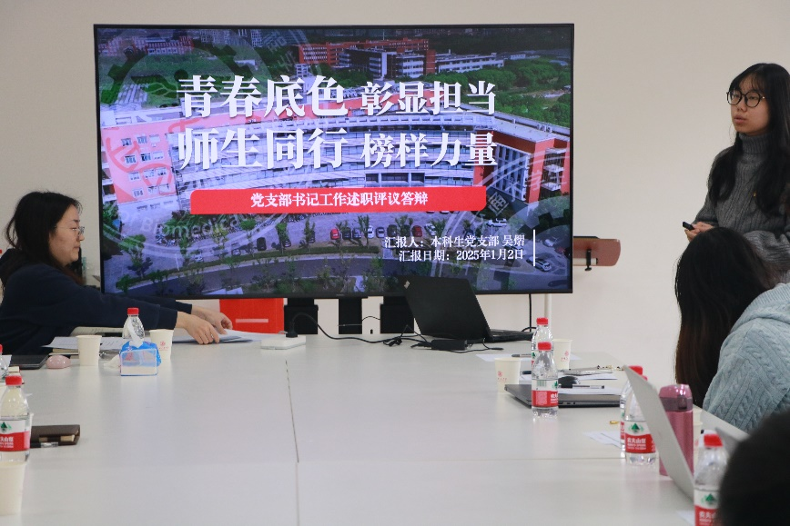 学生支部书记做年度工作述职。11位党支部书记分别从支部规范化建设、党员发展情况、党员教育和支部创新和特色活动开展等方面进行汇报交流。此外,也深刻剖析了支部工作中存在的问题和不足,并对新一年的工作予以展望。