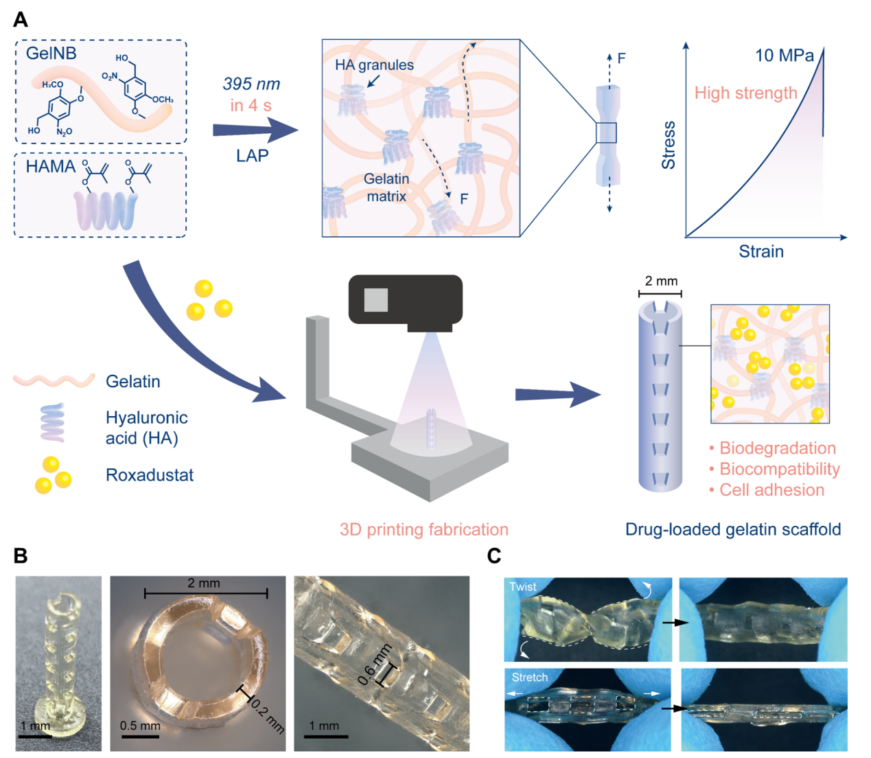 在再生医学与组织工程的前沿领域,科学家们一直在寻找能够模拟人体组织环境、支持细胞生长并最终构建健康组织的理想材料。明胶水凝胶(以甲基丙烯酸化明胶,即GelMA为代表)因其优异的生物相容性、可降解性以及天然促进细胞黏附的特性而备受青睐。然而,随着应用需求不断提升,传统GelMA在力学性能上的“短板”愈发凸显:尽管在实验室条件下“养细胞”得心应手,但在高负载压力或对结构精度要求严苛的应用场景(如复杂组织构建和高精度3D生物打印)中却显得力不从心,如同体质羸弱的选手难以胜任“重量级”赛事。这一限制不仅降低了明胶水凝胶在构建复杂生物结构时的稳定性和可靠性,也阻碍了其从实验室向临床与产业应用的推进。