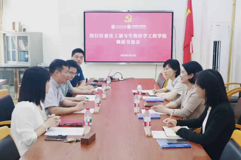 为探索区域化党建工作创新路径、进一步凝聚发展合力,7月17日上午,闵行区委社会工作部(以下简称“社工部”)部长、区非公经济和社会组织工作委员会书记姚媚,闵行区委社工部副部长蒋晓英、新兴领域党建科科长浦君燕一行来院调研。学院党委书记孔令体,副书记付瑶瑶及教师代表出席会议,会议由付瑶瑶主持。