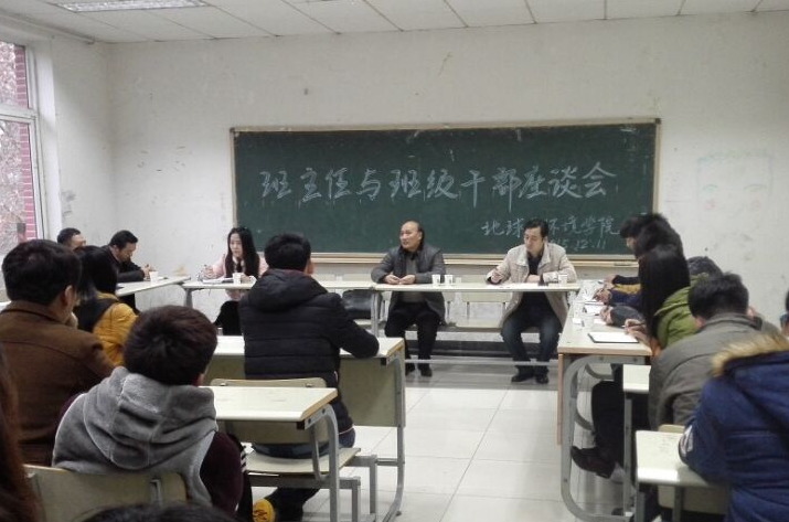12月11日下午,PO18 在北区红楼308教室召开班主任工作座谈会。PO18 党委书记盛鹏飞、副书记侯辉,2015级辅导员赵海霞、班主任、辅导员助理及班级干部30余人参加会议。会议由侯辉主持。