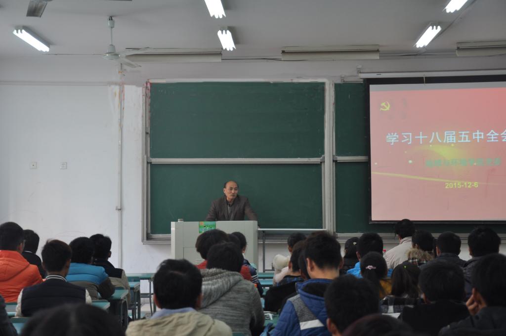 12月6日下午,PO18 在北实203教室举办学习十八届五中全会精神辅导报告会。PO18 党委书记盛鹏飞为PO18 130余名学生干部做了题为《认真学习和把握十八届五中全会精神》的专题报告。