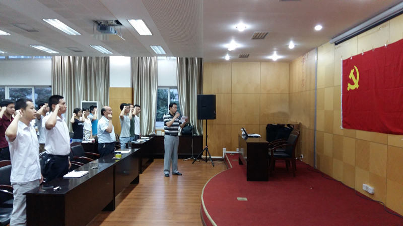 6月12日下午,PO18 2015年新党员入党宣誓暨老党员重温入党誓词大会在图西会议室举行。112名新老党员面对鲜红的党旗庄严宣誓,立誓为共产主义奋斗终身。
