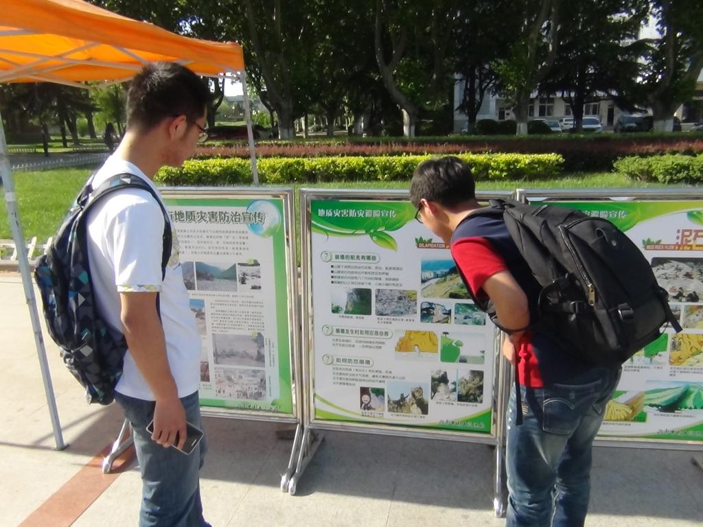 大学生志愿者在喷泉广场通过图文并茂的宣传展板、宣传单等方式向同学们讲解地质灾害的种类及其危害,宣传防灾减灾知识,呼吁同学们关注地质灾害,提升避险救助能力。宣传中,还穿插了防灾避险有奖知识问答,寓教于乐,吸引了众多同学踊跃参与其中。