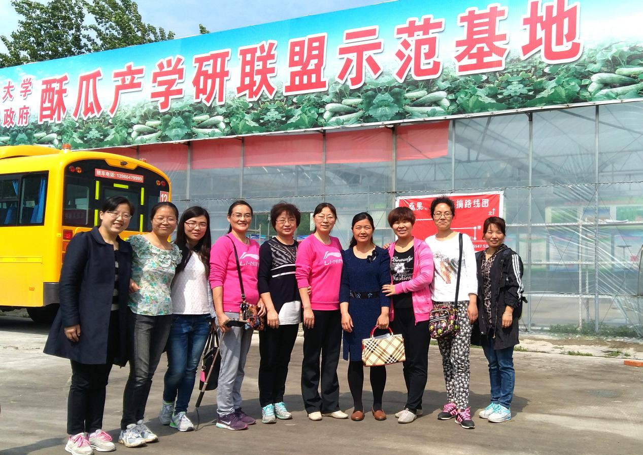 在张军经理的陪同下,女教职工参观了日光温室、智能连栋温室、智能玻璃温室等现代化高效环保的生态农业育苗基地,与生态园工作人员就生态园建设、绿色有机瓜果蔬菜的培育进行了交流探讨。
