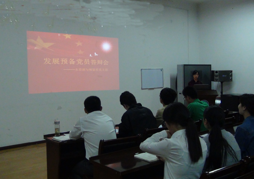 答辩会由个人陈述和评委提问两个部分组成。个人陈述环节,党员发展对象结合精心制作的PPT从对党的认识、入党动机和自身工作、学习几个方面进行介绍,汇报了大学期间的思想蜕变的过程,入党动机有来自家庭成员的影响、有对中国共产党发展史的深刻认识、也有对国家政策的感恩。在提问环节,突出党章党规和系列讲话内容的“党的性质和指导思想是什么?”、“党员的权利和义务有哪些?”、“习近平总书记4﹒26讲话对青年人提出了怎样的要求”、“作为班委,你为班级做了哪些事?”、“对西部计划有什么想法”,提问既结合了“两学一做”学习教育的内容,又联系了同学们的学习工作实际,在答辩现场掀起了一拨拨的讨论热潮。