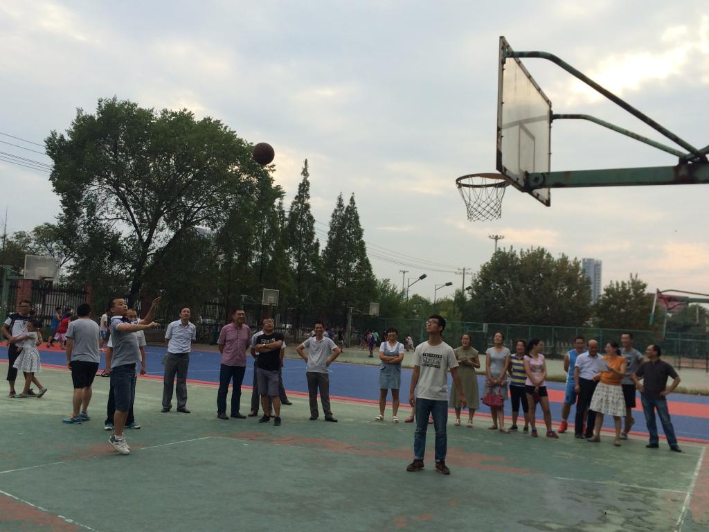 为庆祝第32个教师节和即将到来的中秋节,9月5日下午PO18 在本部篮球场举行定点投篮比赛及教职工篮球友谊赛,PO18 教职工40余人集聚在篮球场上参加比赛。