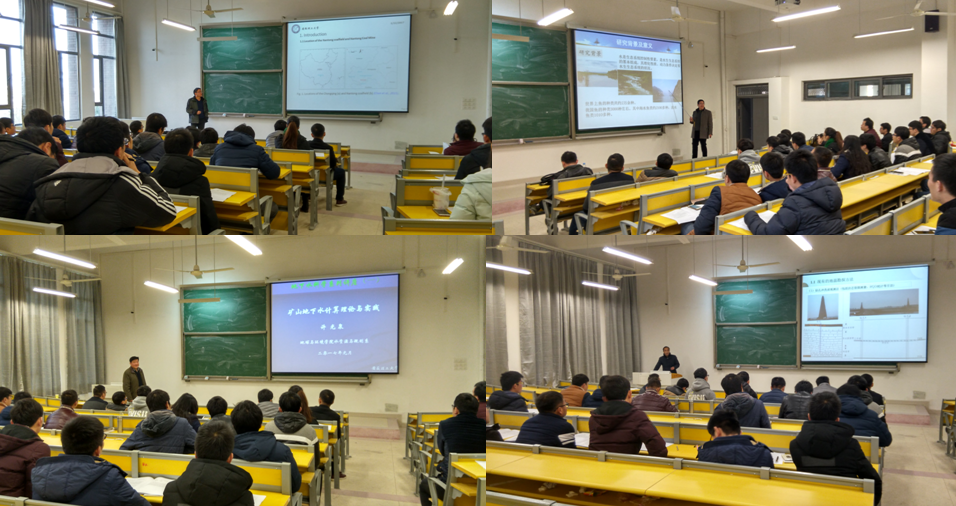 教师组陈健博士、戎贵文副教授、许光泉教授、张平松教授分别做了《重庆南桐矿5煤层煤的矿物学和地球化学特征》、《鱼道设计及模型实验讨论》、《矿山地下水计算理论与实践》和《采场围岩变形与破坏特征综合探查技术与应用》的学术报告。大家结合自己的科研实践过程和研究成果进行了详细和专业的阐述,并和在座师生分享了各自的科研工作经验,给广大研究生后续的科研和学习提出期望。