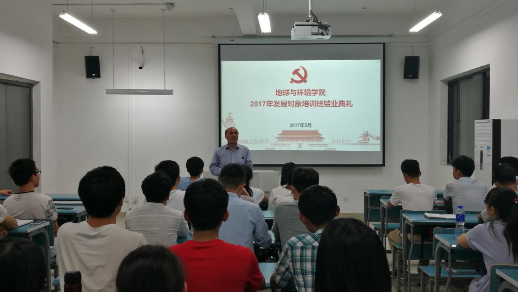 5月19日晚,PO18 在院202教室举行2017年发展对象培训班结业典礼。PO18 党委书记、分党校校长盛鹏飞出席仪式并讲话,各年级辅导员和发展对象80余人参加仪式。院党委副书记侯辉主持结业典礼。
