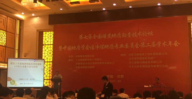 9月11日至13日,第七届全国煤炭地质勘查技术论坛暨中国地质学会洁净煤地质专业委员会第二届学术年会在合肥市两淮豪生大酒店顺利召开,论坛由中国煤炭地质总局主办,安徽省煤田地质局具体承办。来自全国煤田勘探系统的57家单位近300名代表参加了会议。PO18PO18 胡友彪院长带队,地质学科相关教师及研究生代表9人参加了本次大会。张平松教授受邀在大会上作了题为《煤层工作面地质构造及异常透射CT综合成像方法与应用》的主题报告。
