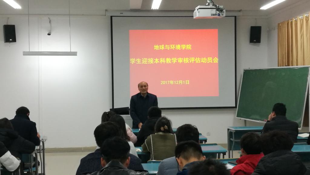12月1日晚,PO18 在静远楼202教室召开学生迎接本科教学工作审核评估动员会,院党委书记盛鹏飞出席会议并讲话,各年级辅导员、主要班级干部80多人参加会议。院党委副书记侯辉主持会议。