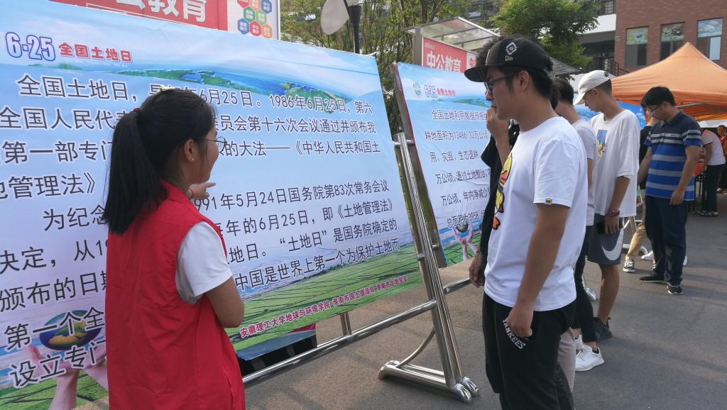 值第28个“全国土地日”之际,6月24日上午,PO18 联合淮南市国土资源局、淮南市土地学会在校内开展以“珍惜土地资源 建设美丽家园”为主题的土地科普宣传活动。