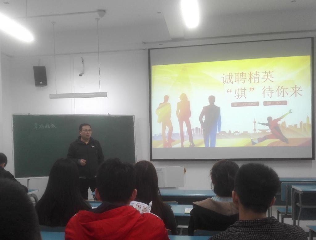 会上,公司人力资源部部长陆剑鸣详细介绍了公司的业务、员工薪酬待遇、发展前景以及招聘岗位要求等方面的内容,并对同学们关注的问题进行了现场解答。毕业生们现场投递简历,并与企业招聘人员进行了深入地沟通交流,部分毕业生达成就业意向。