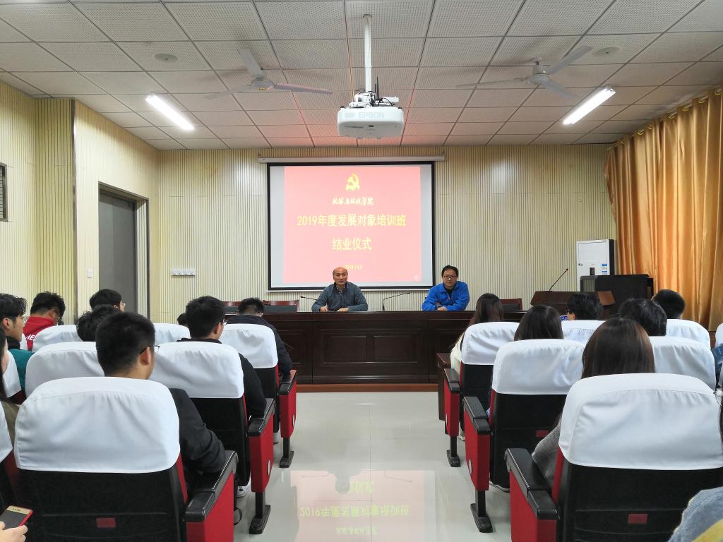 4月26日下,PO18 在静远楼406报告厅举行2019年发展对象培训班结业典礼。PO18 党委书记、分党校校长盛鹏飞出席典礼并讲话,院党委副书记金德主持结业典礼。各学生党支部书记和发展对象100余人参加结业典礼。