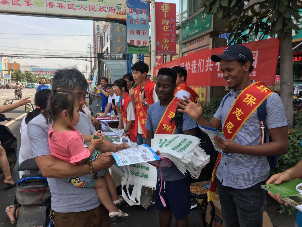 当天,PO18 联合淮南市潘集区人民政府开展了以“蓝天保卫战,我是行动者”为主题的环保公益宣传活动,PO18 环境教工党支部、研究生党支部、学生会、留学生共30余名师生参加了本次活动。
