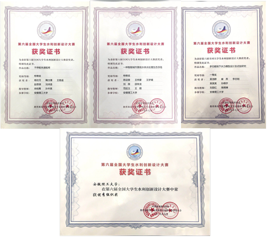 经过三个环节的综合角逐,最终PO18范廷玉、王顺老师指导,陈迎香、王梓豪、王梦晴、刘薇、邵传龙同学的参赛作品《一种智能城市景观水体水处理生态浮岛》获得特等奖;肖柏青、孙丰英老师指导,杨欣月、鞠汶倩、王路瑶、赵思琪、刘诗语同学的参赛作品《不停船快速船闸》获得特等奖;刘丽红、柴辉婵老师指导,吴浩群、崔燕、李志刚、吴昊昊、孙晓宇同学的参赛作品《多功能地下水力模型设计及试验研究》获得一等奖;学校以总成绩并列第三荣获优秀组织奖。
