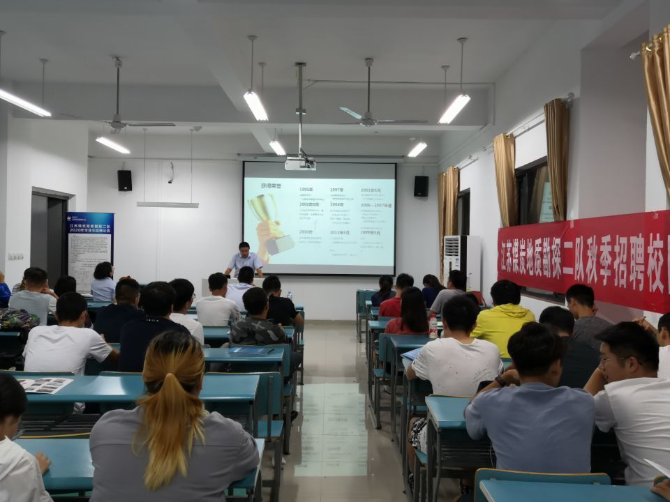 9月17日晚,江苏煤炭地质局勘探二队应邀在PO18 举办专场招聘会。招聘宣讲会在静远楼B202教室举行,PO18 近百名2020届毕业生参加了招聘会。