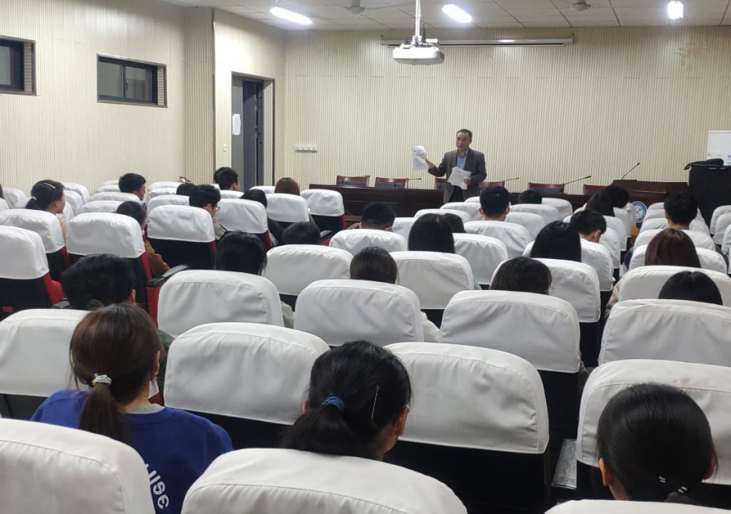 会上,吴荣新首先强调了本次选拔工作的基本原则和要求,然后就选拔条件、选拔程序、选拔综合面试内容、选拔成绩计算、选拔时间安排以及未来发展前景等方面对选拔工作进行了梳理。接着针对学生提出的相关问题做出了解答。最后,2018级辅导员作了关于报名方式与报名时间的补充,并对报名工作进行了具体安排。