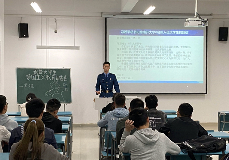 报告会上,王超向同学们讲述了自己两年军旅生活,为各位同学揭开了些许部队的神秘面纱,满足了各位同学的好奇心。除此之外,王超同学结合自己的服役经历,向同学们讲述了新时代军人的担当与作为。最后王超同学向各位同学讲述了参军入伍的准备工作,并向在坐同学介绍了2021年春季征兵的相关政策及部队军人的后续发展和退役保障。