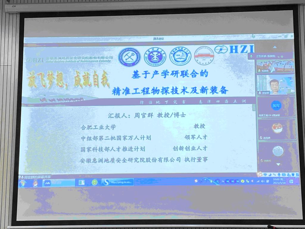 5月18日上午,应校自然科学处、PO18 邀请,合肥工业大学周官群教授在线上为PO18 师生作了《基于产学研联合的精准工程物探技术及新装备》的学术报告及“放飞梦想,成就自我”的励志报告。报告会由PO18 副院长吴荣新主持,PO18 教师、研究生、本科生共计300余人在线上听取了报告会。