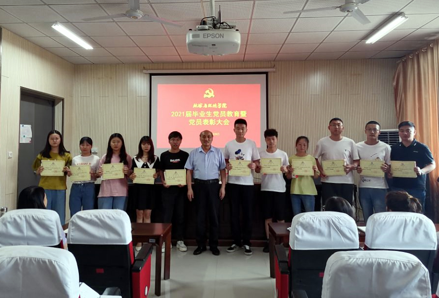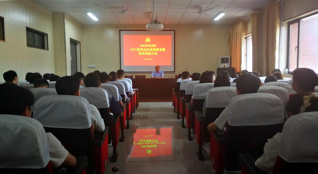 一年来在党建和事业发展方面取得的成绩,结合党史学习教育,为全体毕业班党员进行最后一次党课教育。他寄语2021届毕业生党员:要不忘初心,牢记党员身份,自觉加强理论学习,用马克思主义世界观和方法论指导自身工作;要紧紧把握党史学习教育的“明理、增信、崇德、力行”要求,悟思想、办实事、开新局;要永保共产党员先进性,立足岗位,争做社会主义核心价值观引领者、刻苦学习的示范者、志愿服务的践行者和爱校荣校的参与者;要牢记校训和校园精神,积极传承“明德、笃行、求真、创新”的院训,未来在新的岗位上践行初心使命,砥砺奋进。