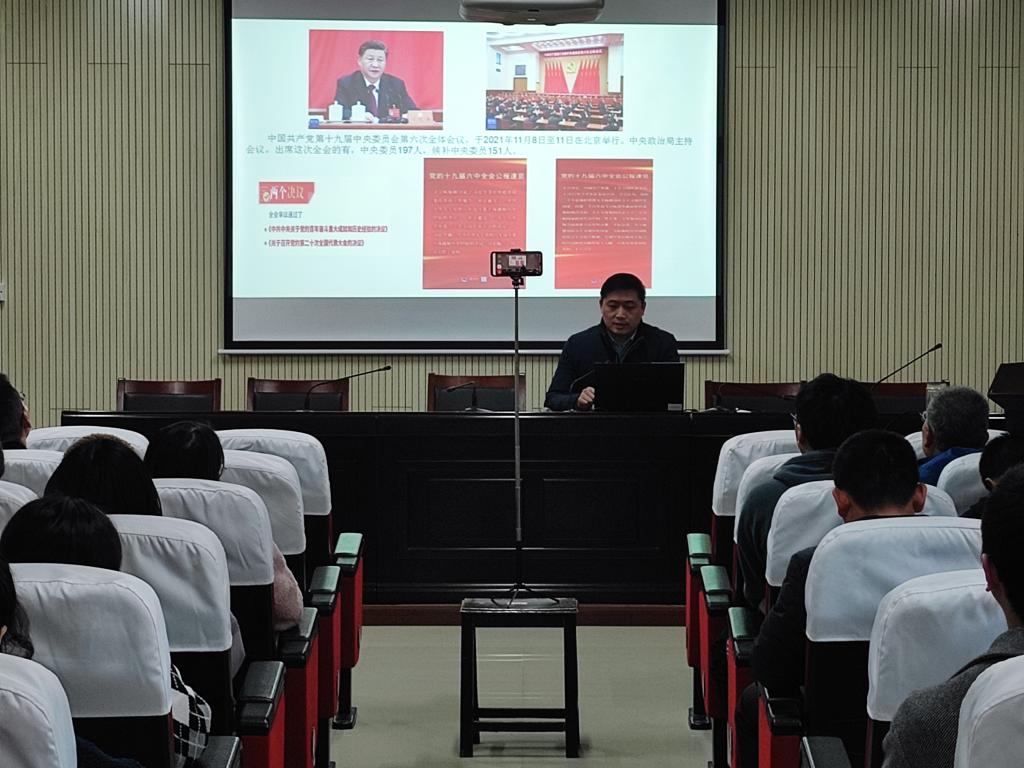 开班仪式结束后,PO18 党委副书记(主持工作)陈楠以《学习贯彻<中共中央关于党的百年奋斗重大成就和历史经验的决议>精神》为题为参训党员上专题党课。他从《决议》的起草说明开始,介绍了《决议》的七个方面内容,重点围绕“开创中国特色社会主义新时代”取得的十三个方面成就、“党百年奋斗的五大历史意义”、“党百年奋斗的十大历史经验”等内容展开学习宣传,强调师生党员要深刻理解“两个确立”的重大政治意义、历史意义,以习近平新时代中国特色社会主义思想为指导,不断增强“四个意识”、坚定“四个自信”、做到“两个维护”。