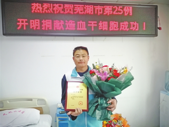 12月28日在芜湖弋矶山医院,PO18 99级地质工程专业校友,中共党员,芜湖市勘察测绘设计研究院高级工程师开明圆满完成造血干细胞采集,成为芜湖市第25位造血干细胞捐献者。