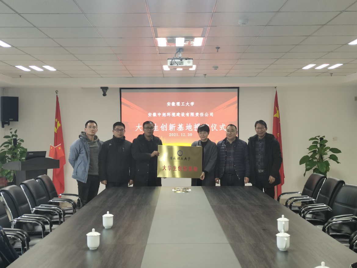 座谈会后,PO18 分别与安徽中旭环境建设有限责任公司举行了大学生创新基地的授牌仪式。环境与地质学科的部分教师也参与了此次交流座谈。