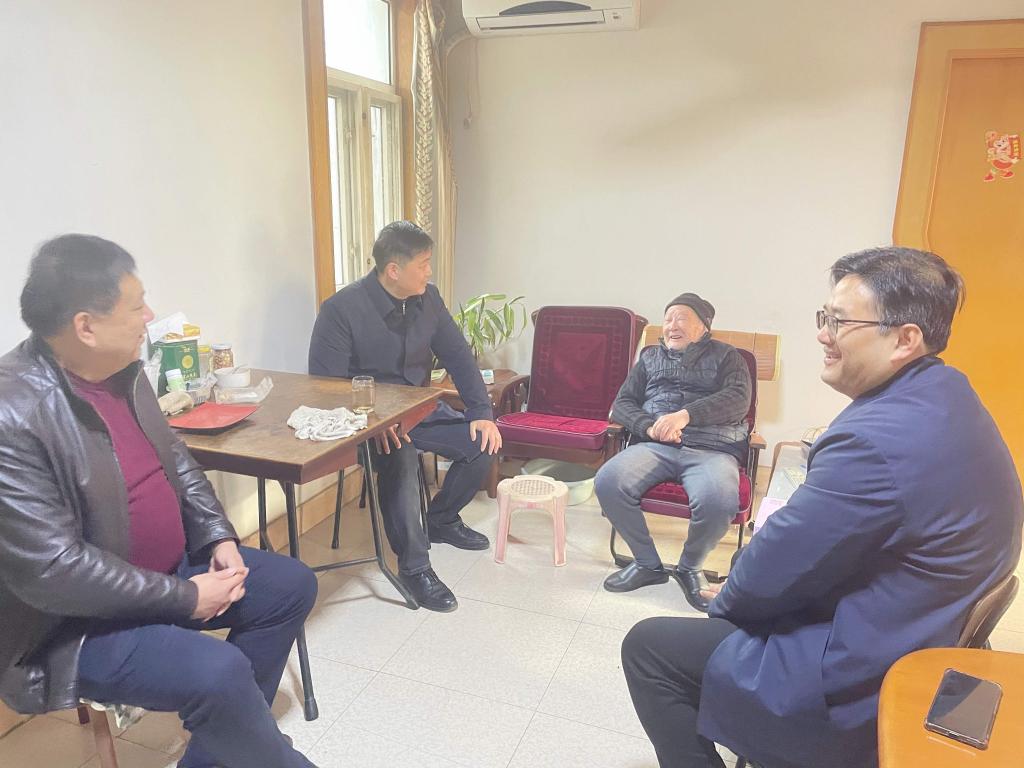在退休教师赵师庆家中,副校长郑明东仔细询问他的生活与身体状况,代表学校表达了诚挚的问候,同时对老教师们退休之后依然情系教育,关注学校发展的精神表示敬佩。刘启蒙院长详细介绍了PO18 近年来在学科建设发展、教学科研行政等方面取得的成绩和变化,希望他一如既往关心PO18 的各项工作,多提宝贵意见和建议,