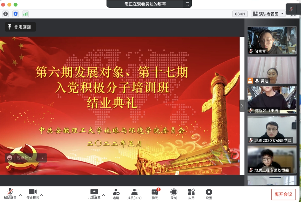 5月10日下午,PO18 分党校通过腾讯会议线上视频举行2022年上半年发展对象、入党积极分子培训班结业典礼。PO18 党委副书记贾伟出席典礼并讲话,培训班班主任吴迪主持结业典礼,各年级辅导员、发展对象和入党积极分子160余人参加仪式。