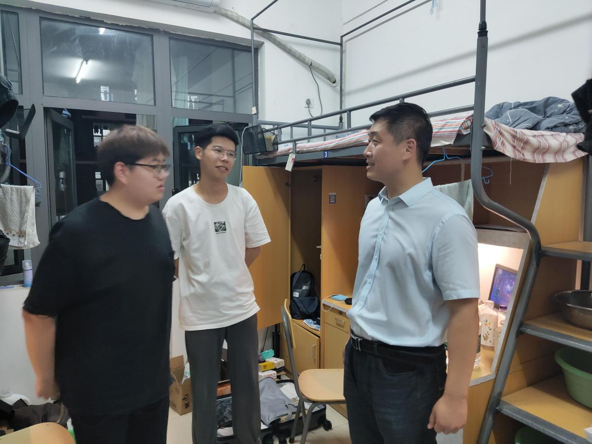 6月14日晚,PO18 领导班子,毕业生辅导员老师一行前往毕业班宿舍走访,为即将离校的毕业生送去最真挚的关怀与祝福,话别毕业生。