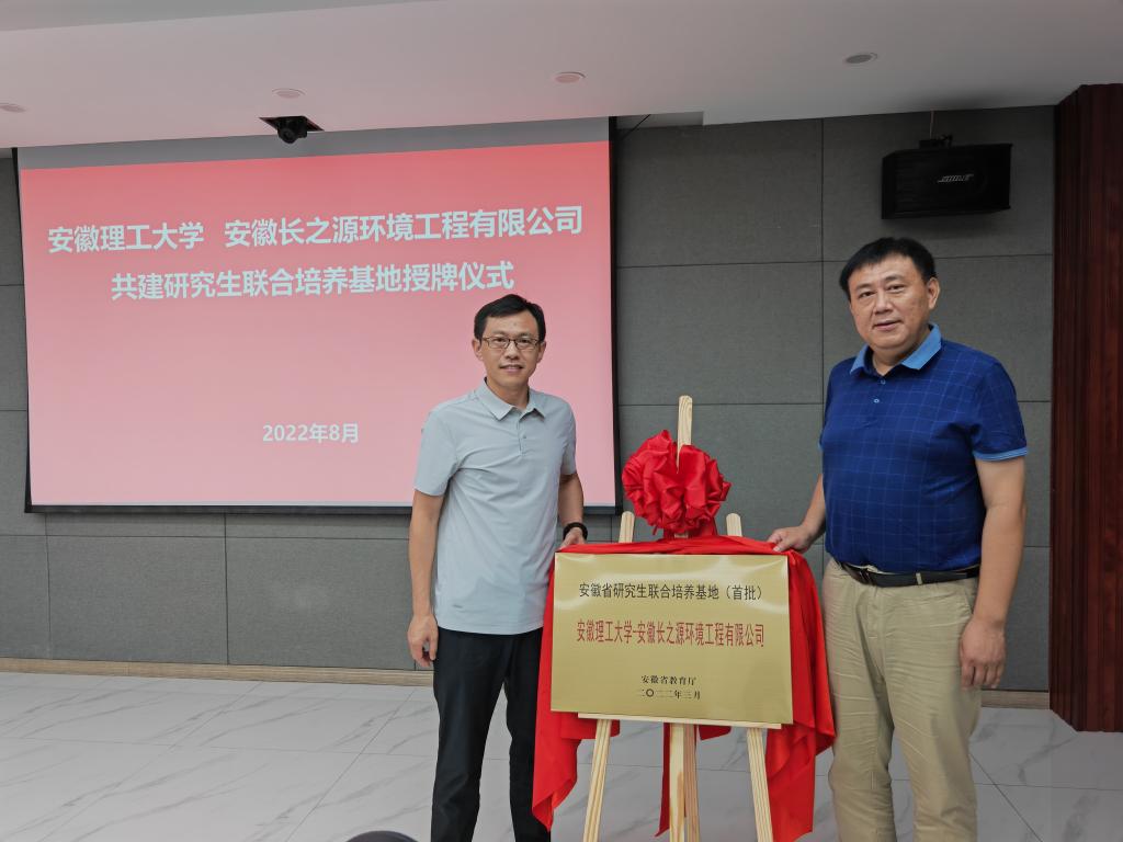 在安徽长之源环境工程有限公司,双方举行了“安徽省省级研究生联合培养基地(首批)”授牌仪式。仪式结束后,长之源公司副总陶涛介绍了PO18、公司资质、业绩和典型用户等方面的情况。公司执行董事田丰感谢PO18 对公司的支持,希望以授牌为起点,一方面做好联合基地建设和产教科教融合,另一方面将为本科生、研究生就业创业提供大力支持。