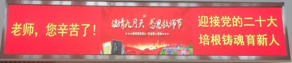 教师节前夕,PO18 在静远楼电子大屏滚动播放庆祝教师节系列图片、文字,营造祥和节日氛围,同时动员同学们线上参与为教师亮灯活动。