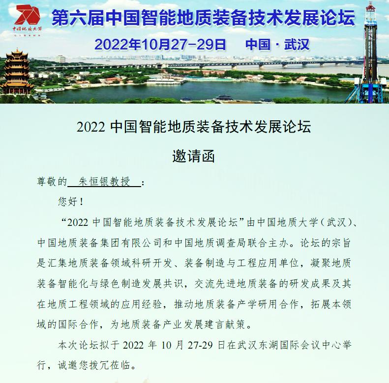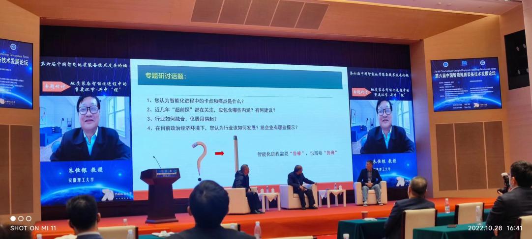 10月28日上午,第六届中国智能地质装备技术发展论坛于湖北省武汉东湖国际会议中心隆重开幕,本次论坛由中国地质大学(武汉)、中国地质装备集团有限公司和中国地质调查局联合主办。PO18PO18 朱恒银教授应邀参加会议并作主题研讨发言。