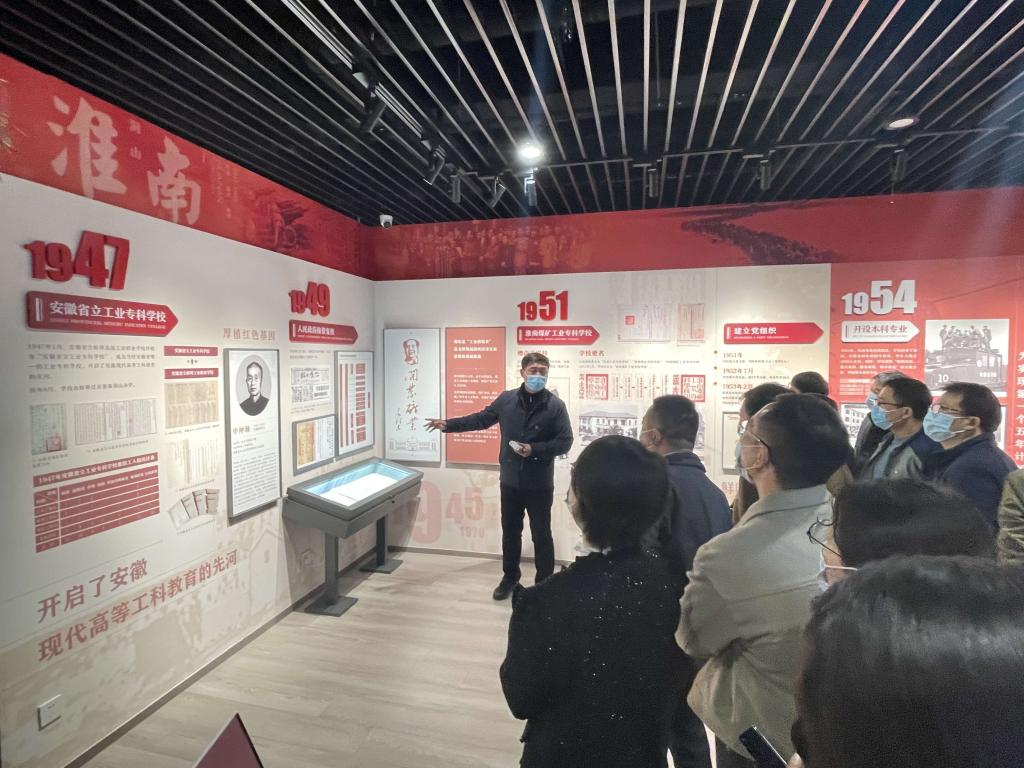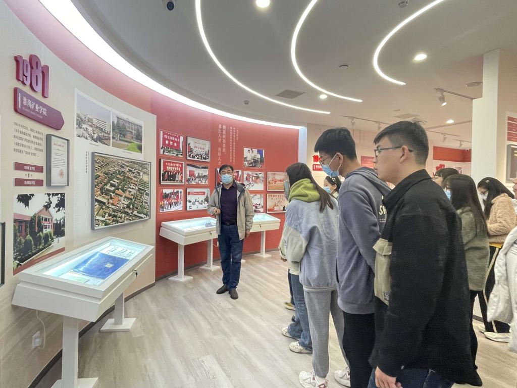 党员师生参观了校史馆两大展厅六个版块,回顾了从1945年安徽省立蚌埠高级工业职业学校、1947年安徽省立工业专科学校、1958年合肥工业大学、1971年淮南煤炭PO18 到今日安徽理工大学这77年来学校的光辉历程与成就。
