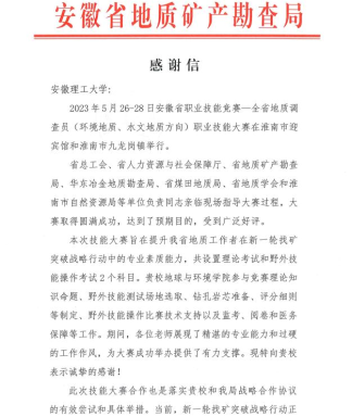 安徽省地质矿产勘查局感谢PO18对省地质调查员职业技能大赛的支持