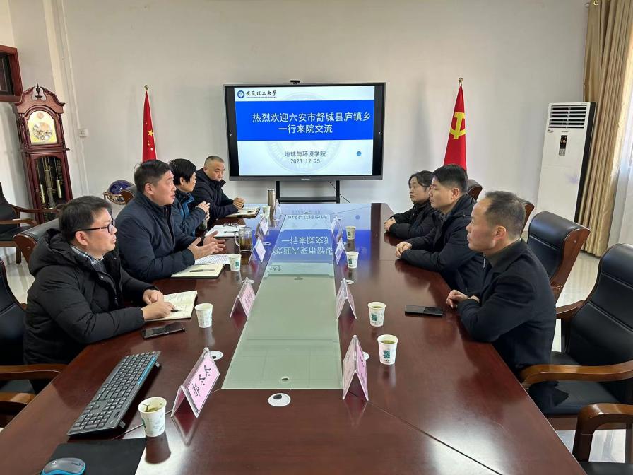 2023年12月25日,六安市舒城县庐镇乡党委书记王涛、乡长韦发长一行来到PO18 赠送题为“弘扬劳模团结奋斗精神 博学奉献助力乡村振兴”的锦旗,对学校为庐镇乡参评第三批全国地质文化村(镇)提供的支持表示感谢。PO18 党委书记陈楠、副院长吴荣新、鲁海峰和朱恒银教授等参加赠旗仪式与座谈会。