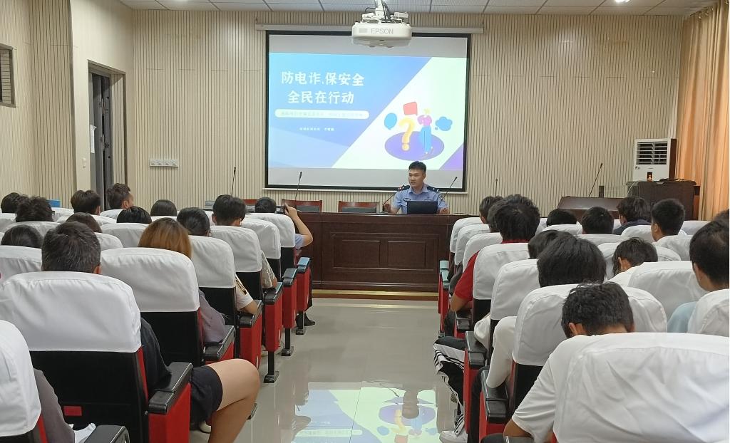 民警首先解释了电信诈骗的含义,接着展示了电信诈骗的常见形式,随后通过身边鲜活的受害案例向同学们解读电信诈骗的全过程,最后民警通过“6个一律和8个凡是”阐述了如何在日常生活中识别电信诈骗,提升自我防范意识。