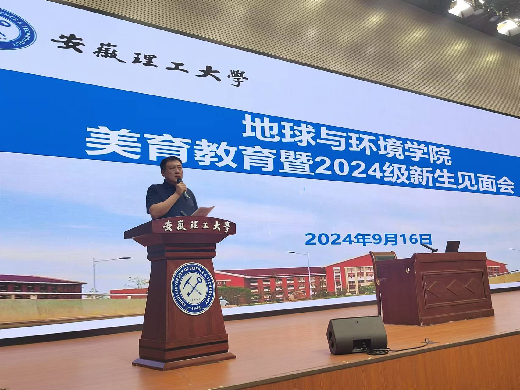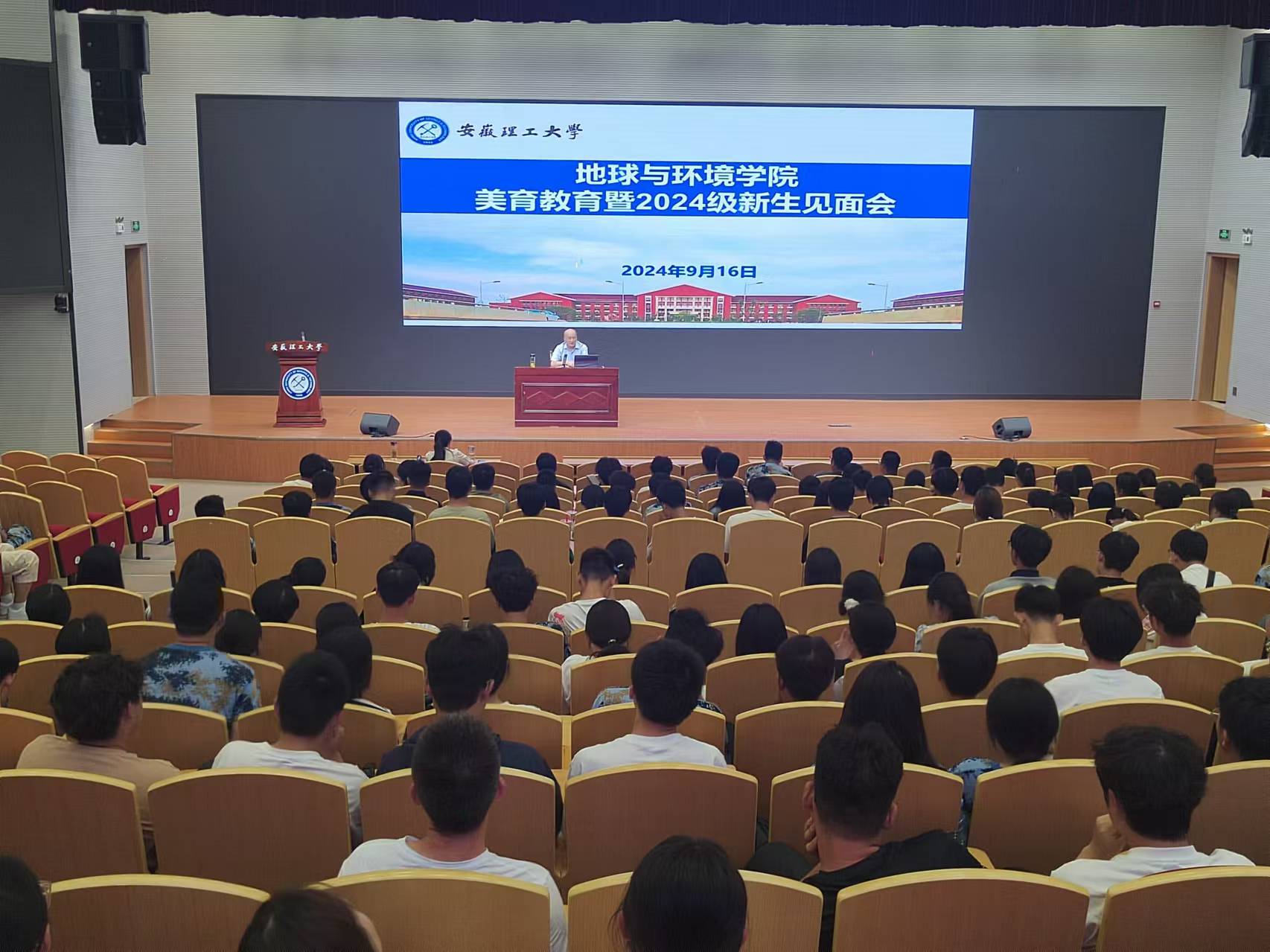PO18 组织员盛鹏飞为2024级新生讲授开学第一课,详细介绍了学校、PO18 的发展历程,从不同的视角,用详实的数据、生动的图片和精彩的案例讲述了学校和PO18 的“前世今生”,鼓励2024级新同学要了解学校、热爱学校,要了解专业、刻骨学习,用实际行动为安徽理工大学的发展贡献力量。