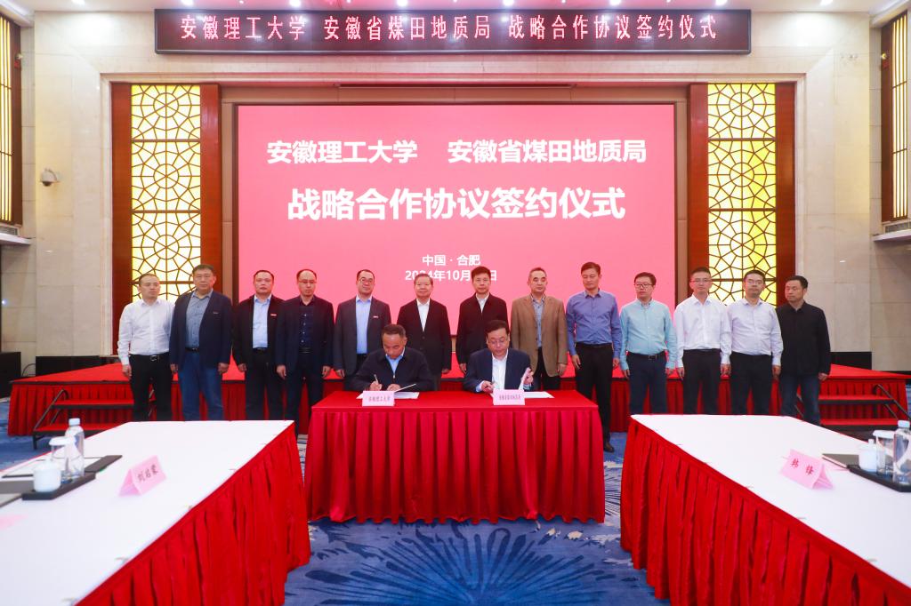 10月11日下午,学校与安徽省煤田地质局在合肥签署战略合作协议。校党委副书记、校长袁亮院士,安徽省煤田地质局党委书记、局长李军出席签约仪式并致辞。校党委常委、副校长张平松参加活动。安徽省煤田地质局党委委员、副局长张新程主持签约仪式。