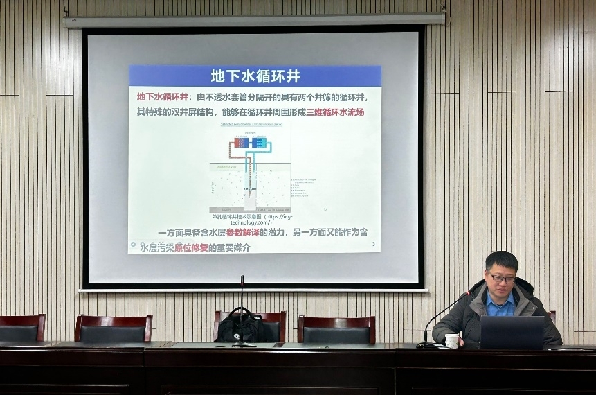 12月20日上午,中国地质大学(武汉)文章教授应邀来PO18 作题为“含水层污染原位修复中的地下水循环井模型及应用”的学术报告,详细介绍了其团队在地下水循环井模型开发及修复应用方面的最新进展,报告由PO18 副院长张世文教授主持。PO18 众多青年教师及研究生参加了本次活动。