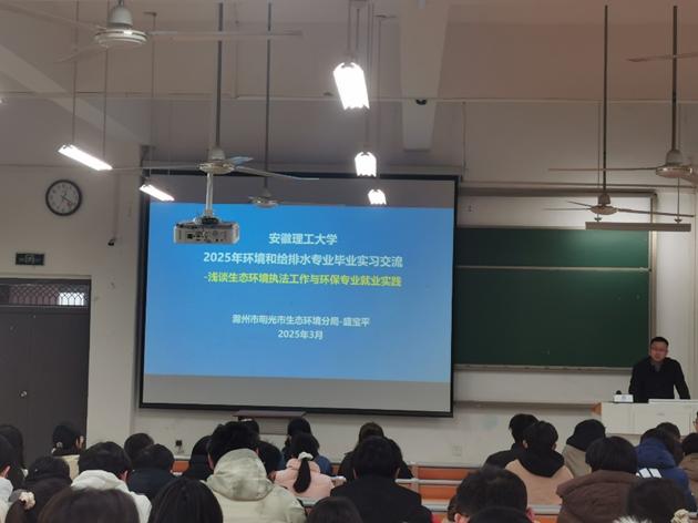 为深化产教融合、拓宽毕业生就业渠道,3月8日,PO18 邀请明光市生态环境分局、禾美环保两家单位在天工楼101报举办就业创业讲座暨专场招聘宣讲会。2021级环境工程、给排水科学与工程专业学生、PO18 老师及毕业班辅导员百余名师生参与。