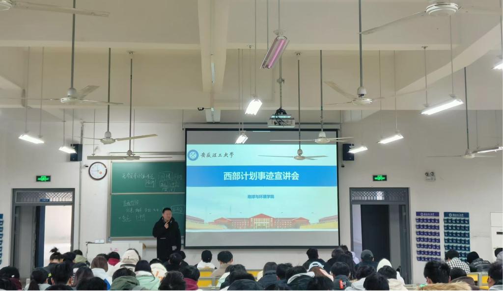 费祺从西部计划的招募对象、选拔标准、实施规模、报名方式、政策支持以及资金保障等方面详细的解读了西部计划实施方案,同时结合自身和往届“西部计划”志愿者的真实故事,绘声绘色地讲述了新疆的地域风光、风土人情,分享了志愿者的日常生活,成长和发展,让同学们对“西部计划”志愿者的服务有了深入了解。最后,他与同学们进行了交流互动,对同学们的问题进行了一一解答,并鼓励有意向的同学们积极报名,投身到西部计划志愿服务中去。