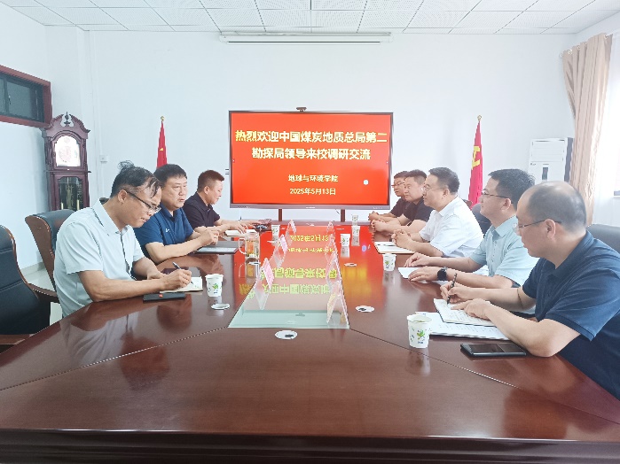 5月13日下午,中国煤炭地质总局第二勘探局党委委员、纪委书记左德松一行5人来PO18 调研交流。座谈会由院长刘启蒙主持,副院长张世文、地质与勘查工程系吕玉广教授参加座谈会。